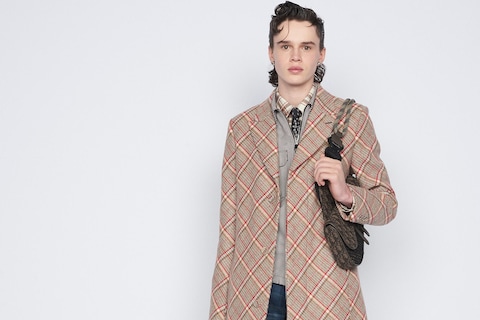 These Dior clothes were also definitely, defiantly IRL – indeed, they were ample justification for the staging of this show, their physicality resonant in a way a picture couldn’t quite convey. I’m thinking specifically of the knits, glinting subtly as if flecked with lurex (very mid-century) but actually embroidered with thousands of micro-sequins, also glistening on shirt plackets and across checkered knits used for hats and even inlaid into hiking boots. The tailoring, too, was exceptional: relaxed, slouched in ideological keeping with the relaxed nature of American sportswear, many were bias-cut in maxi-checks that recalled American collegiate wear – but also the 1960s styles of Dior itself. And the colour palette of the cardigans, overcoats and tailored blazers could have come from Dior ballgowns: raspberry, milky ivory, chartreuse. The latter, actually, was used for couture jeans – flocked to give a velvety texture. The whole collection was an interplay of delicate, nuanced textures – in person, it felt like the difference between tapping the sterile screen of a kindle and the feel of the fuzz of paper between your fingertips as you turn the pages of a book. Intimacy. They were quiet clothes, crammed with details to be appreciated by the wearers alone. They were, eminently, real.
