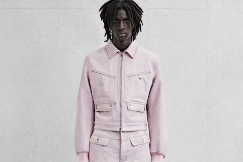 The lookbook – made up of clean silhouettes and tasteful, sometimes twisted tailoring – features singular lapels upturned in the suiting, creating a sharp new neckline. Also key are leathers in the form of harnesses, bags, bomber jackets and wide-leg trousers, adding subtle notions of kink. Though mostly black and white in palette, muted shades are introduced that are “reminiscent of the evening glow”.
