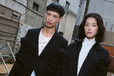 Hair: Yu Nagatomo. Make-up: Tamayo Yamamoto. Models: Gendai at Donna Models, Hao and Pak at Tomorrow Tokyo, Yuhi at Bravo Models and Yuzuha at Model Agency Friday. Casting: Ino Yu and Taka Arakawa at Alter Casting. Digital tech: Hiroki Nagahiro. Photographic assistants: Keiko Sasaoka and Kota Kishi. Styling assistants: Bella Kavanagh, Alexander Bainbridge and Maria Vittoria Casizzone. Hair assistant: Mayuka Nomura. Make-up assistant: Misaki Oka. Production: Taka Arakawa at Babylon. Production coordinator: Azusa Nozaki. Special thanks to Adrian Joffe, Marilyn Porlan, Moreno Gottardo and Nicolas Aksil at Comme des Garçons COMME DES GARÇONS HOMME PLUS SS25 is worn with socks in cotton (throughout) UNIQLO