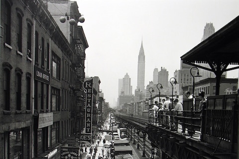 Using her Rolleiflex camera meant looking downwards, never making eye contact with her subjects – the twin lens of the camera providing a disguise, or shield, from the world she portrayed. Maier enacted the same liminality in her own working life, both a part of and apart from the wealthy families she served as a nanny. In her photography she practised this ability to be at once engaged and distant, present but invisible. “She said she needed to take a lot of pictures of her face to find her face in the world,” Morin observes. “She was no-one – society had convinced her of that at the time. She was just a nanny, so she took control of her own identity through those self-portraits.” In one striking shot she seems reduced to nothing but a shadow, but on closer inspection stands tall and strong in the miniature reflection of a garden sprinkler embedded within the shadowed grass.