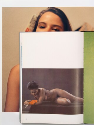 Now, as In Front of the Camera deftly demonstrates, she’s ready to take this exploration one step further: where recent exhibitions experimented with the possibility of taking fashion pictures into a gallery, this one is much more about studio practice, and “how pictures float around the studio and make connections with one another,” she says – “be it through someone coming into the studio and standing next to a picture on the wall, or a book opening up onto a picture. It’s much more in my head, this work, and much less about the performance.”