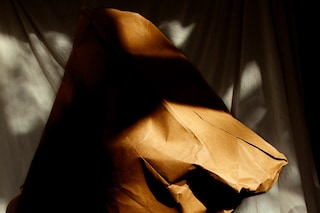 For Day, it was important for Seesaw to address certain issues with a lightness. “I am quite a playful and mischievous person and always look for the positives in everything I do,” she explains. “I wanted to approach some of the themes with a lightness because although this has been such a surreal and difficult time for many, particularly those who have lost their loved ones or their jobs, it has also been positive for people to work at a slower pace.” There’s humour, therefore, in photographs like Zilch, a take on the impact of stockpiling, which sees Day stare through the cardboard inner tube of loo roll; while others, like Paper Bag, offer an insight into how the photographer has felt restricted by the pandemic.