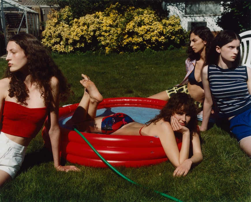 Hair: Sophie Jane Anderson. Make-up: Michelle Dacillo. Models: Giulia at Present, Jimena at The Hive, Katie at Premier and Emily at Select. Casting: Monika Domarke. Set design: Max Randall. Print design: Mélanie Imbert.
