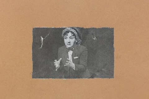 As in his films, Jarmusch alludes to different eras, cultures, realms and subcultures throughout the works, but whether or not you’re familiar with these references has no bearing on the collages’ overall ability to cast a spell. Bauhaus doyen Josef Albers sits in his studio, his visage made up of text; suited men’s heads are replaced by artworks (an asymmetric Picasso face here, a Basquiat mask there) that break free of the central frame; a lone man in the back of a car wears the forlorn head of a fox.