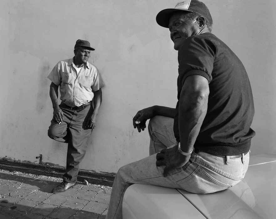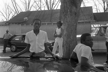 Lee’s process was deeply collaborative. He used a 4 x 5 viewfinder camera that had to be mounted on a tripod. “It obviates the possibility of surreptitious photography,” says Lee. “You have to ask somebody’s permission and you have to enter into a contract with the person that you want to photograph.” The first question people would ask when Lee approached them, he tells me, was “Why do you want to take a picture of me?” “There is no bullshit to answer that question,” says Lee. “You have to be able to say, with certainty and precision, exactly why. It’s a disarming question. When I am confronted with a question, I have to have an answer. It might have to do with a grace of stance, how somebody may be leaning against a car. It may have to do with the way that person may have been laughing or talking to friends. But it always starts with something extremely specific.”