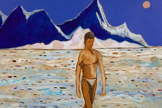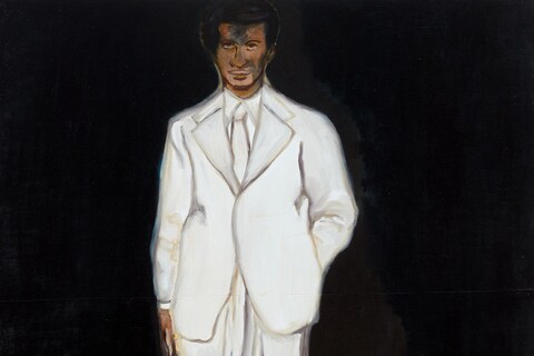 In his mystical, jewel-like compositions, Ghanaian painter Gideon Appah suspends time beyond past, present and future. His intensely colourful canvases are populated either by nude or semi-nude figures languishing in a private eden, a tranquil, prelapsarian world, or by suited men smoking outside a nightclub, reflecting these shifting temporalities. These often fictitious characters, painted in varying hues of ochre and ultramarine, emanate from old newspaper entertainment columns and vintage Ghanaian film stills as well as the artist’s vivid imagination.