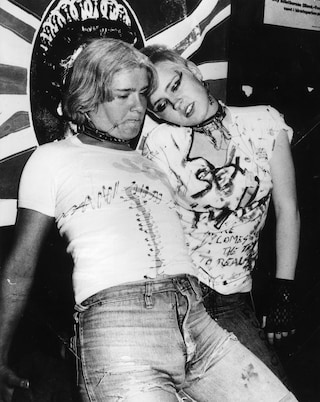 Reid created multiple versions of God Save the Queen, including placing a safety pin through the monarch’s lips and a swastika in her eyes, as well as the now iconic image of her against a tattered Union Jack, which has also been used as the visuals for Anarchy in the UK. On October 28, the band released their long-anticipated LP Never Mind the Bollocks, Here’s the Sex Pistols, with a simple yet lurid album cover that resulted in a Virgin Records shop owner in Nottingham facing obscenity charges in court. Against a queasy yellow background, the title appears in three fonts: all black but for the ‘Sex Pistols’ in neon pink.