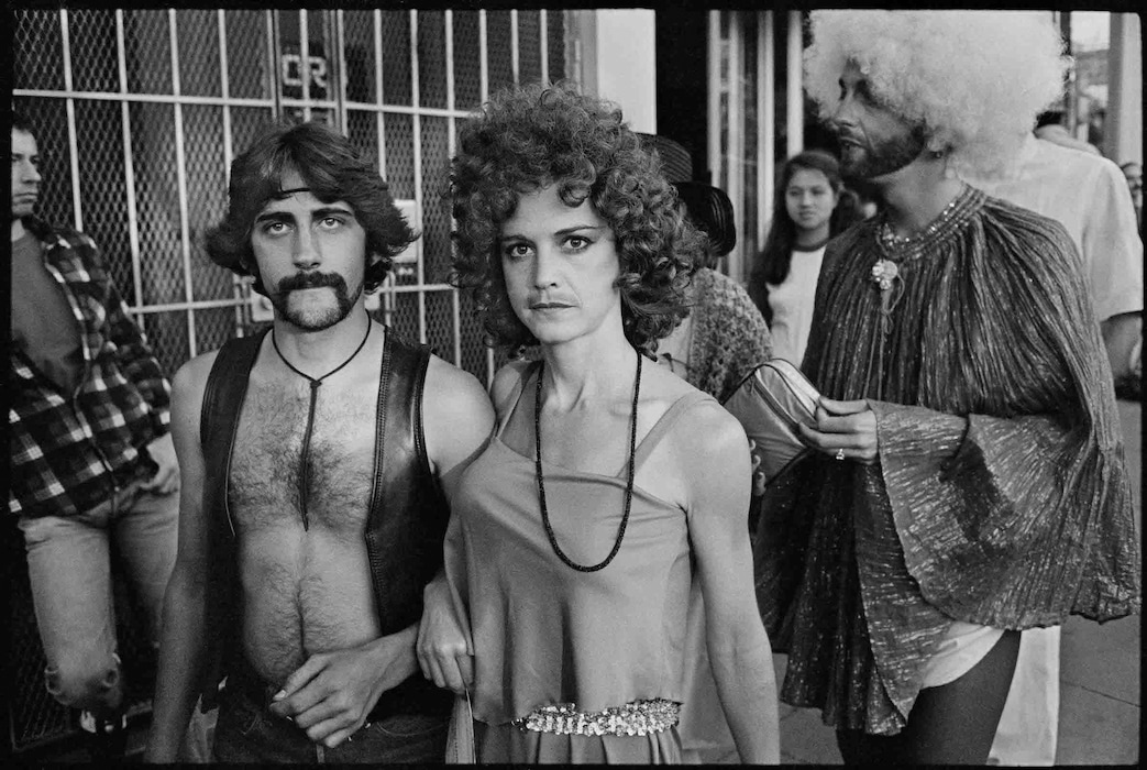 With a Leica rangefinder camera loaned to him by a childhood friend, Blair walked through this so-called “gay paradise”, capturing everything from the mundane to the profane. He photographed individuals dressed head-to-toe in fetish gear, others who preferred to communicate in more subtle codes and winks, and the everyday passersby who moved around them. Between 1979 and 1986, he followed the fervour to other pockets and playgrounds of gay life across the US – New York’s Christopher Street and Fire Island, and Provincetown, Massachusetts.