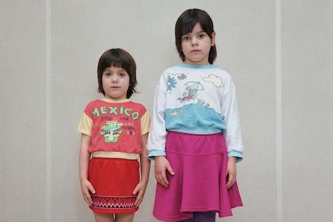“Two years ago, I started reorganising my negatives and contact prints. It was an interesting process because with 30 years having passed, I noticed all these new relations and possibilities in my own images. I started to build a collection of group and double portraits of people who connected in a certain way. In the 90s, I had focused on single portraits – I now became interested in the relationships between different subjects in one image. Their postures, their expressions, what the similarity of an outfit says or how people distinguish themselves. The best photos, I noticed, always contained a certain contradiction; a kind of tension, both in the figures themselves, or in their relation [to one another].