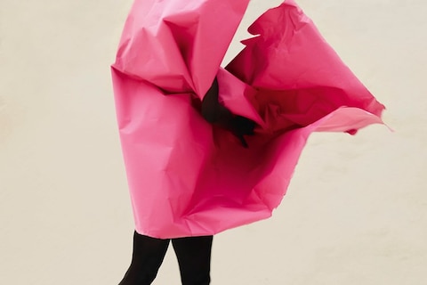 The book is comprised of photographs shot by Carlijn Jacobs, Harvilahti and Asha himself across locations as diverse as Paris, the USA and Brazil. Swathes of bold-coloured paper were torn, crumpled, rolled and wrapped around the models to create incongruous shapes, fixating the gaze on the strange beauty of the unfamiliar silhouettes within their contrasted settings. “In each place we went, we tried to find colourful backdrops to contrast with the paper tubes,” explains Asha. “I look at it as a whole image – the paper is a more abstracted shape in ordinary spaces.” The majority of photographs are shot with natural light; his striking Paris series, for example, was taken “around 6am with the beautiful golden light on the Parisian streets.”