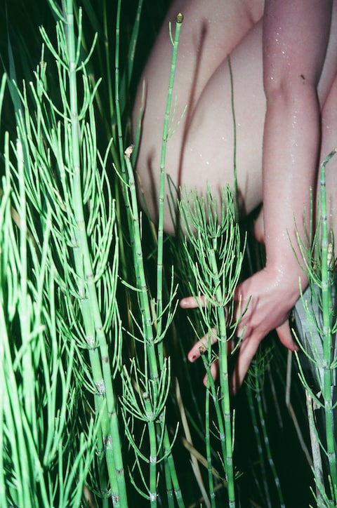 MacCarthy has been working on the show since January, but the picture that started it all was taken back in 2018. Captured in the Polish countryside in the dead of night, it captures the lower half of her friend Ella’s naked body jumping through tall green crops, her skin wet and shimmering in the moonlight. “It’s the first photo I truly fell in love with,” MacCarthy says. “We were 20 and staying in the middle of nowhere in a caravan, swimming, wandering about, drinking vodka and being silly. I’ve always thought it was quite an alien, strange thing.”