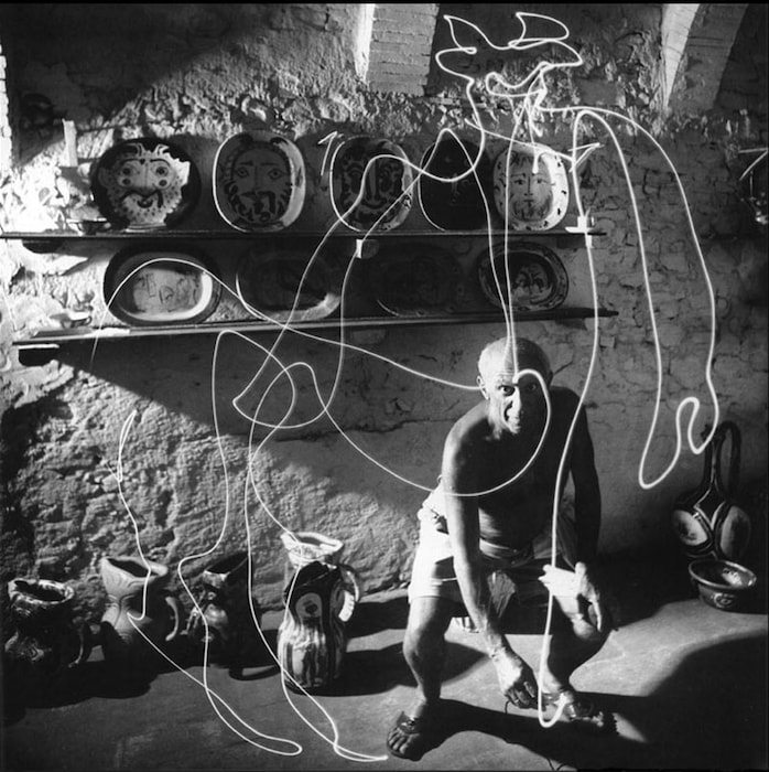 Picasso draws with light, 1949Photography by Gjon Mili, Courtesy of LIFE Magazine