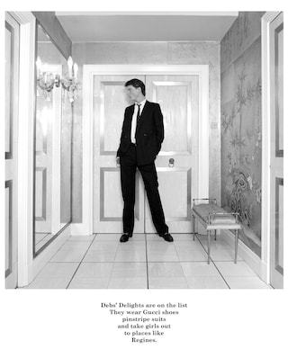 "I really do like the one on the cover [above], it’s one of my favourites. He looks like a giant but it’s because the apartment he’s standing in was built for Elizabeth Taylor and it’s very theatrical looking. If you photograph someone who’s quite tall using a two and a quarter square camera – where you have to look in at the top from a lower angle – people look taller. He looks a bit like a star from one of those old Hollywood movies. He went on to become a banker, of course."