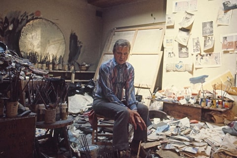 Bacon's famously messy and eclectic studio at 7 Reece Mews in London’s South Kensington (now recreated at the Hugh Lane Gallery in Dublin) was the epicentre of his world. Heaped piles of rare medical textbooks, snapshots of crime scenes, crumpled Renaissance reproductions and technicolour celebrity photographs became a personal archive, layered with years of paint and dust. Bacon’s confident erudition didn’t distinguish between Old Master paintings and Hollywood stills. He preferred to work from images or memory rather than life itself, and developed a radical painterly technique based on creative accidents.