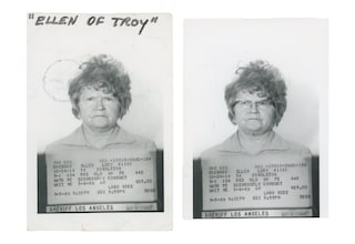 Some of these relics are deeply disturbing – a mid-20th-century photograph of a murder scene, for example, focuses on the window where the burglar entered. It’s only after a few seconds that the viewer registers the corpse, half off-camera in a corner of the image, slumped naked over a bed. Other photographs are full of humour: a Los Angeles mug shot from 1969 shows a disheveled, middle-aged woman, Ellen Lucy Chenard, who has been arrested for disorderly conduct. A policeman has scrawled the nickname “Ellen of Troy” above her head.