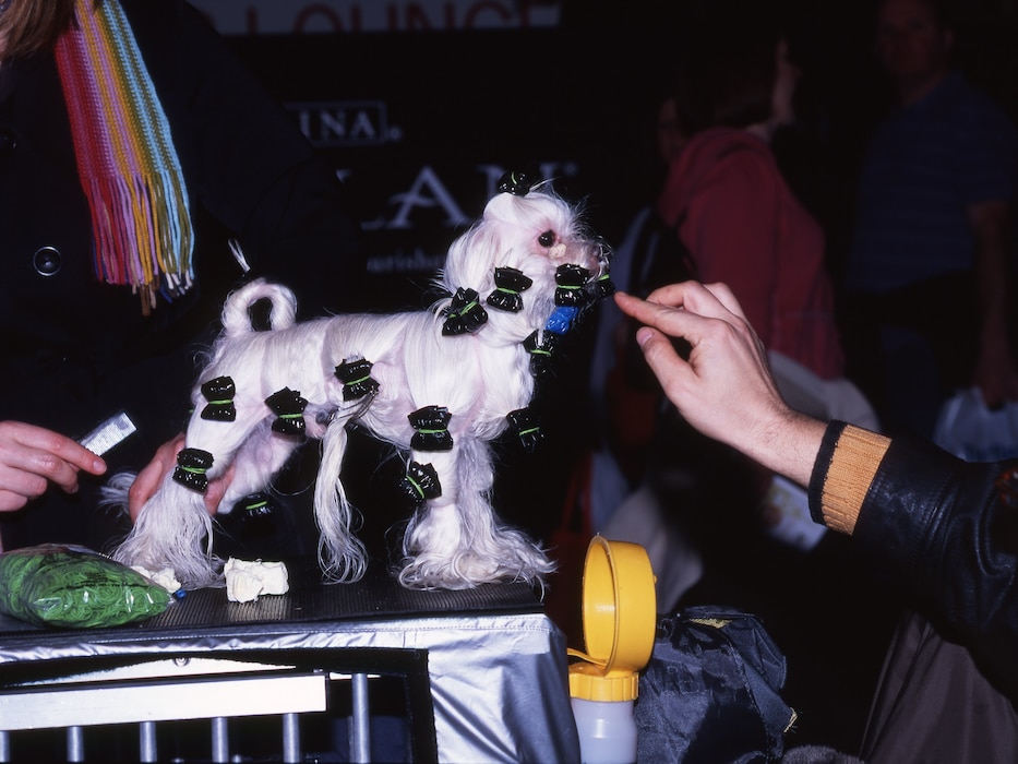 The amount of grooming that goes on at dog shows is also notable – although it is perhaps naïve to be surprised by this. Owners have combs and clips and brushes at the ready, in a manner which resembled mothering to Andersen. “Some of the dogs are treated like little children and are smothered with love and silly outfits. I saw competitors with crews who would help out in hair spraying the coats, varnishing the nails, curling the hair.” Dog person, cat person, any person – we defy you not to smile at these brilliant photographs.