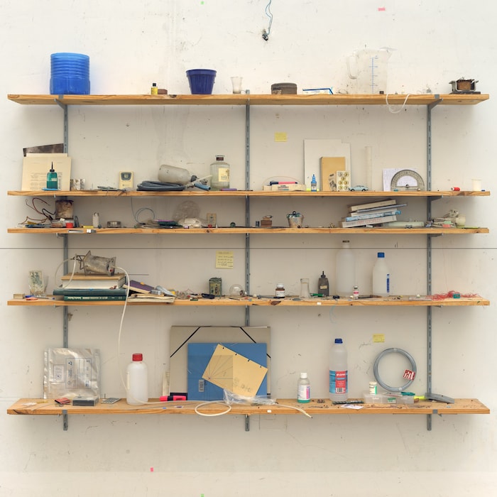 It’s not often that images of dirty studio floors and shelving units full of everyday detritus manifest as something that borders on the sublime. Which is why Manuel Franquelo’s exhibition at Michael Hoppen Gallery, titled Things in a Room: An Ethnography of the Insignificant, feels particularly special. At first glance, you might be fooled into thinking that the large-scale images hanging on the gallery’s walls are hyperreal paintings paying homage to the likes of Chuck Close or Richard Estes. But you would be mistaken: for they are, in fact, photographs presenting as painterly surfaces via the technique that the artist employs to create them. Although, Franquelo was uncharacteristically reluctant to reveal his methodology: “It is probably not very helpful to discuss how things have been made. I believe that the idea of ‘seeing behind the scene’ is just a fallacy, an illusion popular in TV shows made for entertainment. It is just not possible to be in the position of the author seeing through his eyes and thinking with his brain,” he explained.