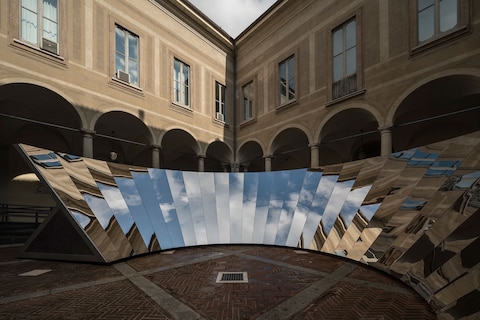 “I talk less of the materiality of it – I think about it less as I’m using mirrors, because then I’m just talking about the material and what it is. What I’m more interested in talking about is reflection, and I’m using it because I want to use the material of the palazzo’s architecture, I want to use the sky as a changing, colour-shifting material that I can’t grasp in my own hand, but I can show it to you, I can present it to you in the same way that an artist is going to take acrylic and put it onto a canvas. That’s the way I look at it: I’m taking the sky, I’m taking the renaissance architecture and I’m putting it onto a canvas, maybe allowing you to see it for the first time.”