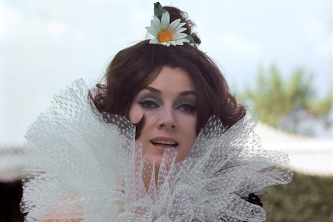 Satyricon’s breathtakingly intricate set and fanciful costumes – dreamed up by fêted designer Danilo Donati – were Fellini’s most decadent yet. (Dolce & Gabbana confirmed the film’s enduring sartorial influence when they funded its restoration in 2012.) Donati dressed the cast in fabulous coloured classical tunics, spanning cerulean and peach to scarlet and cadmium yellow. The fabrics used were specially treated and pressed with a seven-foot iron to give “the crinkly effect Fellini wanted,” their maker revealed. Statement gold jewellery and gilded hairpieces abound, the latter frequently combined with the traditional Roman piled-curl hairstyle – a look Donati called “the Roman epoch on Mars”. Wild make-up by Piero Tosi, meanwhile, ensured that the actors’ faces remained a focal point no matter how outlandish the scene.