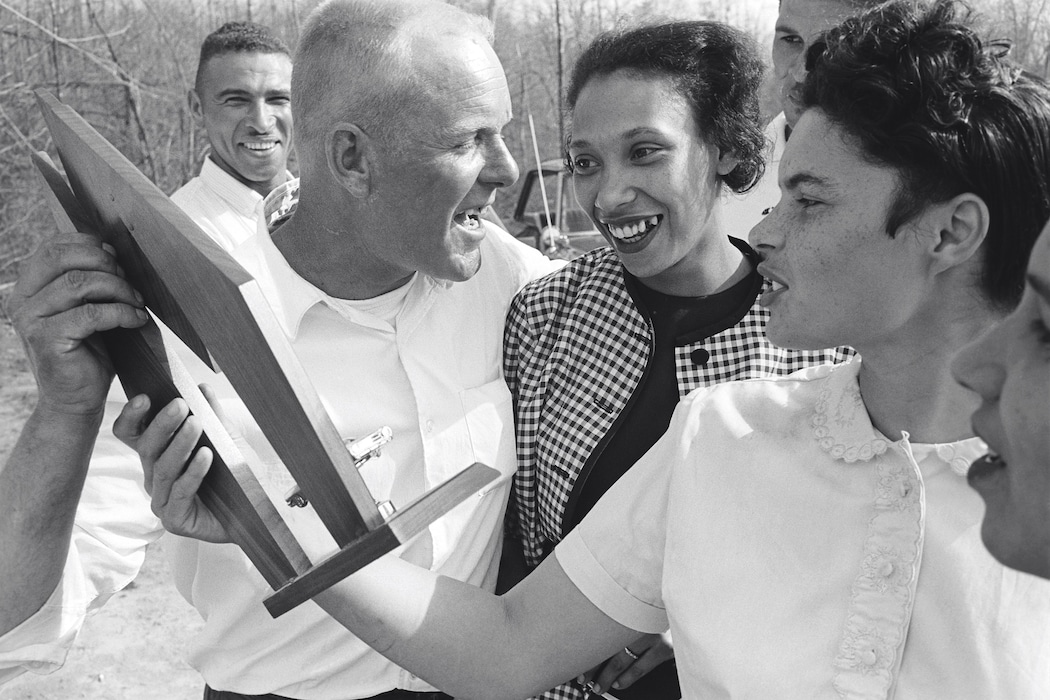 These traits are all strikingly apparent as you leaf through the pages of the book, aptly titled The Lovings: An Intimate Portrait. We see Mildred and Richard sweetly embracing, worriedly discussing, softly kissing, busily engaging in family life, always seemingly unaware of the photographer’s presence, even when the images are captured in close-up. “When I look at contacts or the negatives in order, I can see Grey moving in,” Villet says. “He’s sensing that something’s about to happen, and then in the next sheet, he’s in there: he’s seen it, moved towards it, isolated it, changed lenses in a fraction of a second – his technical ability was amazing – and then he’s got it!” One such example sees the couple standing on their front porch, a white wooden post symbolically standing between them. In the first shot they chat casually, Richard’s mother and two of the children visible in the background. In the next, Villet has intuitively zoomed in on the pair, capturing the exchange of a beautifully tender, highly intimate glance.