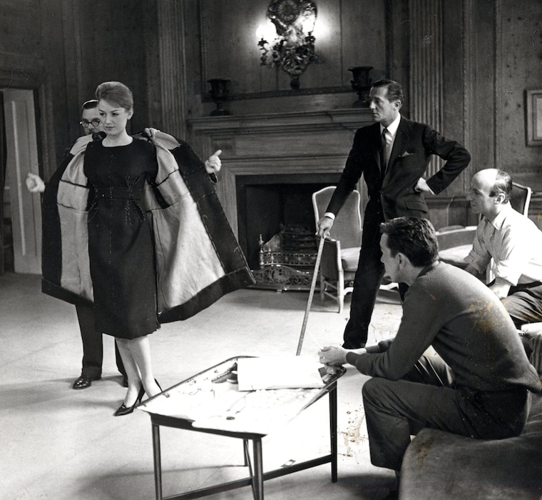 A self-proclaimed snob – “it doesn’t mean to say that you’re unkind to the lower orders, being a snob simply means that I think the top is the best,” he explained – couturier Hardy Amies rose from a modest background to go on to outfit Queen Elizabeth II for almost four decades. Operating from number 14 Savile Row, he is best remembered for his tailoring – undeniably conservative, it was nonetheless instilled with a fluidity that made it popular with society women of London, working under the rule that “day clothes must look equally as good at Salisbury station and the Ritz bar”. Though his outfits for the queen were occasionally deemed frumpy and he was, particularly in the latter half of his career, prone to outspoken attacks on the British designers that followed (“neither I nor my staff would know how to make such clothes, and we would not want to,” he said of John Galliano and Alexander McQueen in The Spectator) he will nonetheless be remembered for the golden age of his career – the 1950s, where his elegantly-cut suiting and constricted waistlines saw him working in the manner of his Parisian contemporaries, Christian Dior and Hubert de Givenchy. In the film, the scene in which Woodcock takes part in a photo shoot with Alma bears striking resemblance to photographs of Hardy Amies and model Fiona Campbell-Walter, taken in 1953.
