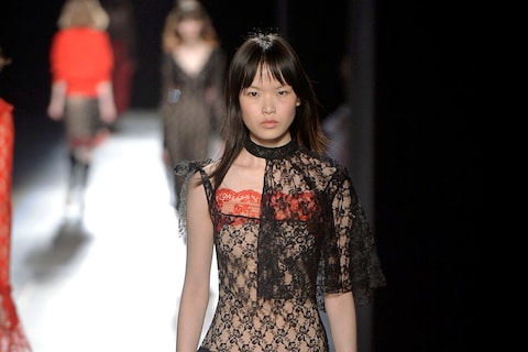 Christopher Kane has long been obsessed with sex. And, rather than shy away from his favoured subject in the midst of the #MeToo movement, the current mood sees him relax into the theme – perhaps more than ever. “Since the beginning, I have found [sex] fundamental to our idea of women; women with their own power who create their own worlds and are in charge of them,” writes Kane in the show notes for his A/W18 collection. So, from the repressed, patent-clad and rubber glove-wearing housewife of S/S18 comes the sensuous, bush-baring and The Joy of Sex-reading woman for A/W18. Repurposing illustrations from the radical 70s book, Kane plunders erotic references outside of his expected remit.