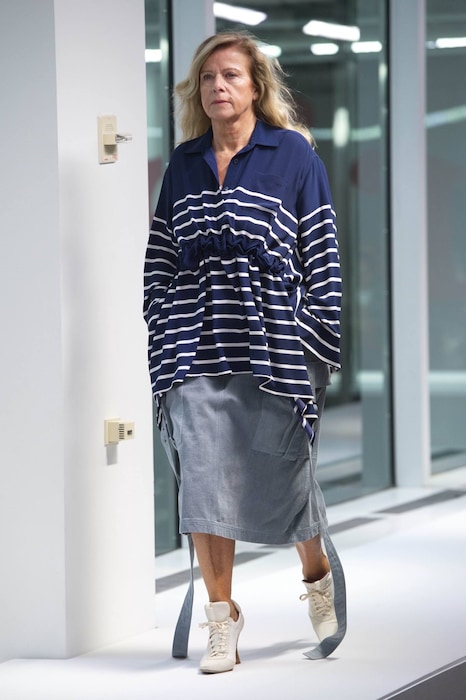 “I’ve always had this idea to include friends and family and people I love in my work. When Sies Marjan started we did ‘The Girlfriend Project’ with Nigel Shafran, where he shot my friends in the clothes; these people that I love and that I’m familiar with. But we never really did it in our shows – for that we’ve always done it in a more traditional way, with models. And I love models, so I never wanted to reject that, but I really felt like I wanted to add something more personal to it this time. I thought it made a lot of sense to put my mum in it – this collection was so about my dad, who is not alive anymore. It would make sense that the tribute would also involve my mum.