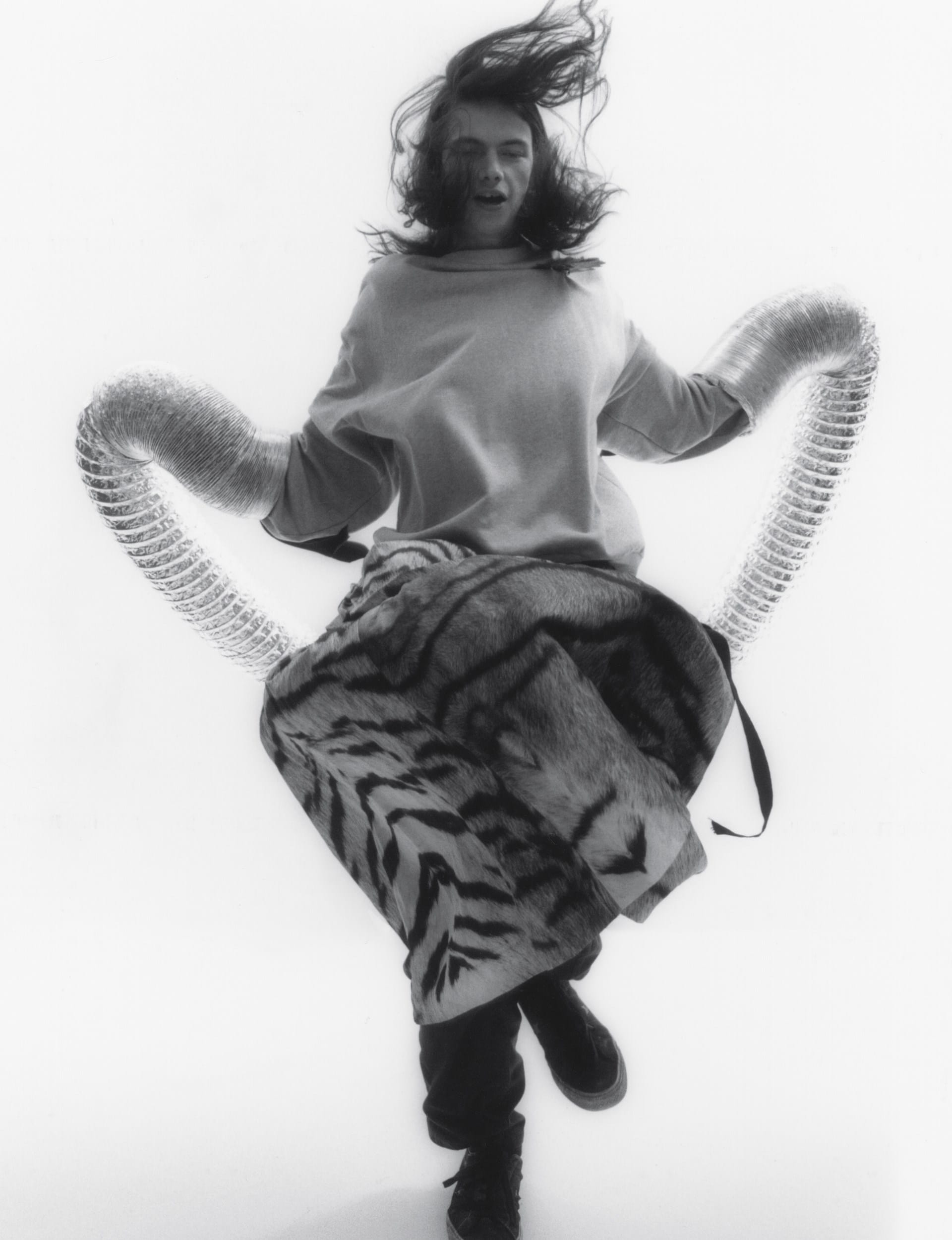 Hair: Ryan Mitchell at Streeters using Bumble and Bumble. Make-up: Hiromi Ueda at Art and Commerce using Desert Dream and Le Lift by Chanel. Models: Anahi Puntin at Select Models, Florence at Tess Management, Kieran at Tomorrow Is Another Day, Lola Nicon at Rebel Management, Sihana Shalaj at IMG and Zso at Premium Models. Talent: Anna from Medicine Cabinet, Dave, James, Jack and Finlay from Walt Disco. Casting: Jess Hallett at Streeters. Set design: Jabez Bartlett at Streeters. Manicure: Adam Slee at Streeters using Le Vernis in Rouge Noir and La Crème Main by Chanel. Digital tech: John Heyes. Photographic assistants: Darren Gwynn and Ivano Pagnussat. Styling assistants: Lydia Simpson, Angus Mcevoy and Meja Taserud. Seamstress: Tina Kalivas. Hair assistants: Mike Mahoney and Akua Gyamfi. Make-up assistants: Chloe Holt and Sunao Takahashi. Set-design assistants: Ellen Wilson, Louis Simenon and Alister Osbourne. Production: Holmes Production