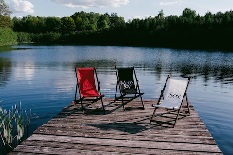 Coming this week, conveniently, is another joyous fix, as More Joy drops its next summer collection. On the line-up this time around are more of the same – new iterations of its classic paper fans, a sporty, sun-blocking visor, a phone case – as well as a series of new and wholly covetable items including boxy bowling shirts, swimsuits and trunks, water bottles, cardholders, and the pièce de résistance: a trio of deckchairs stamped with the line’s three mottos.