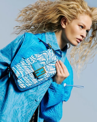 As part of the collaboration developed with Coleman, Fendi had also reimagined its Peekaboo X-Tote and the Baguette 1997 with a new ‘FF Fisheye’ motif, which sees house’s signature FF logo become wavy and fluid, “as if seen through a fish-eye lens”. “The FF logo designed by Karl Lagerfeld is so timeless,” says Coleman, reflecting on the experience of working with the iconic interlocking print. “It’s beautiful, it’s transformative, it just goes with every flow which is why it has stood the test of time. There is nothing trendy about it. It is art, design, architecture, movement, all in one.”