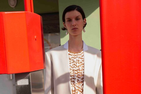 To mark the launch of her fantastical swimwear collection, Dilara Findikoglu teamed up with Academy Award-winning director Yorgos Lanthimos for a series of surreal images shot on the English coast. “I was thinking about that feeling of swimming; of entering the water and becoming purified and all the bad energy being cleansed away,” the designer told AnOther in July.