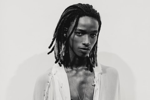 A concise, ten-look collection, each piece was brought to life with the swagger and sway of the sauntering models’ hips. For Autumn/Winter 2022, Alleyne honed his signature drapery, either punked up – safety-pinned within an inch of its life, not for the faint-hearted – or more sophisticated, like the white, Grecian gown that closed the collection. The designer’s menswear offerings felt more relaxed, but were also livened with kinetic energy: from billowing trousers split up the sides to the flashes of skin that peeked out under a curved hem jacket, or through ab-exposing cutouts.