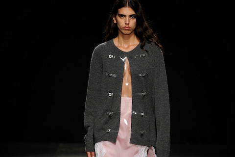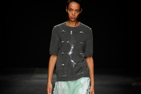 Christopher Kane is a designer obsessed with the body. In London’s cavernous Roundhouse venue, he put on his first runway show in a year – and boy, did it feel like a proper show. Drawing on physician’s uniforms, the anatomy of the body and flowers (one of the designer’s obsessions), Kane sent out a series of slick, delicate lacy looks with clear vinyl braces strapped around the outside of the body like exoskeletons. “This collection is a celebration of the beauty and complexity of the human body,” he explained, while the show’s booming, medical soundtrack spoke of bones and femurs. This was an intelligent, high-concept collection – one that made you think about what lies beneath the body’s surface – that still managed to retain a strong sense of elegance and wearability.