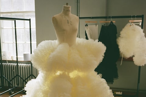 Tucked away from the noise in a dilapidated Victorian mansion in Lancaster Gate, Dilara Findikoglu staged a show in silence. It was purposefully unsettling; reminiscent of fashion salons, models walked with a slow saunter just centimetres from the crowd; only an eerie clomp of heel against the hardwood floor told you they were coming. A standout look saw a white overbust corset draped with printed, punk-inspired Union Jacks – atop the model's head was a crown made of hair. Elsewhere, model and daughter to Harry Hamlin and Lisa Rinna, Amelia Gray, stepped out in a corseted, distressed leather dress. It was hauntingly beautiful, bound by a signature hard edge of punk. Findikoglu’s cultural weight has been growing through the years – having been worn by the likes of Bella Hadid and Rihanna and with the introduction of Dilara Swim – this collection, in its details and quality, was her best yet.
