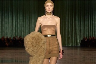 Anthony Vaccarello’s latest collection for Saint Laurent was crafted almost entirely from sheer nylon stocking material. The only real hint that this was a Winter collection were a few luscious marabou jackets slung across models’ arms as they circled in razor-sharp stilettos around rooms scented with the house’s iconic Opium fragrance. Vacarello explained backstage that he “wanted to propose something that hadn’t been done before, that would get me excited. My job isn’t always to do something that’s real or realistic.”