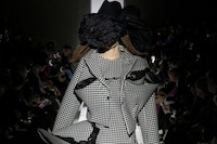 These dresses were big in and of themselves, of course. Some of the structures were enormous, the models’ chins held involuntarily erect through the pile-up of cloth beneath them, heads crowned with vast picture-hats that, perhaps, echoed the dress of a different century, another time. “Of course I’m conscious of history, it goes without saying,” Kawakubo has said about her references to the past. “There's never any literal transmission.” But in expressing those feelings, there were shadows of a simpler past. Or, indeed, maybe it was a past just as obsessed with empire-building as our own, but remembered with a rose-tinted haze of nostalgia?