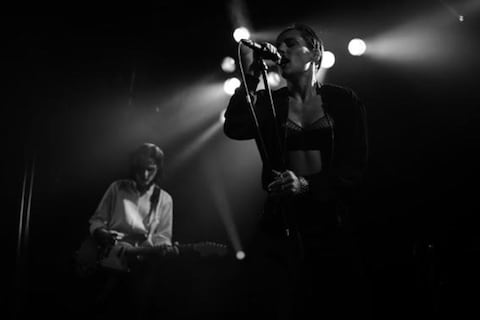 The venue was divided into two distinct moods, the ground floor presented a more masculine scene, decorated with low-lit antique lamps and a bar serving Caipiroscas and grapefruit vodka cocktails. While upstairs, attendees were welcomed into a pink-carpeted feminine paradise, as dapper bus boys in pristine white suits served sweet Bellinis and appletinis. Immersive mood lighting took guests through tripartite phases of the evening; a warm introductory glow made way for dramatic monochrome beams as Savages stormed the stage – and, later into the evening, the space was electrified with bright blue spotlights as Arca commenced his DJ set.