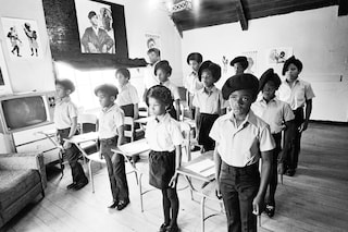Informed and uniformed – they were known to carry law books – these patrols sent out a very powerful message. “Leather jacket and blue shirt. I made it the uniform when we founded the party,” writes Bobby Seale in his new book, Power to the People. He explains the origins of the Panther uniform in reference to the famous blues song (What did I do to be so) Black and Blue? originally written by Harry Brooks, Fats Waller, Andy Razaf. “I’m saying the American community is all beat-up black-and-blue from over 200 years of racist discrimination... Now, let’s make this the uniform.”